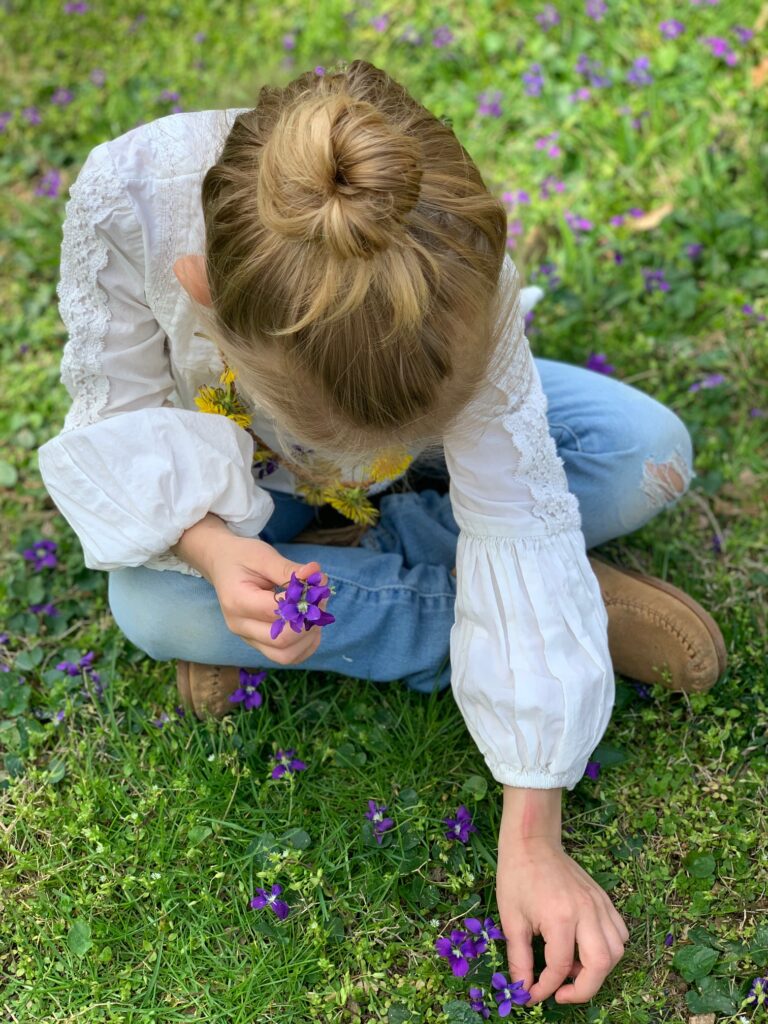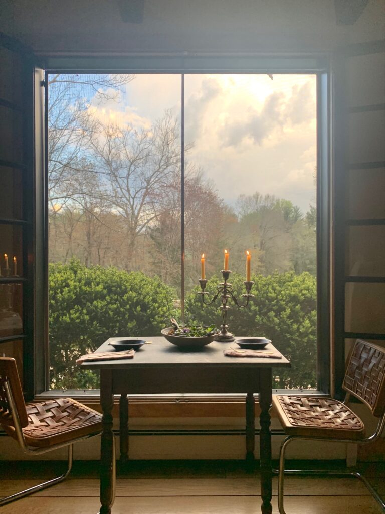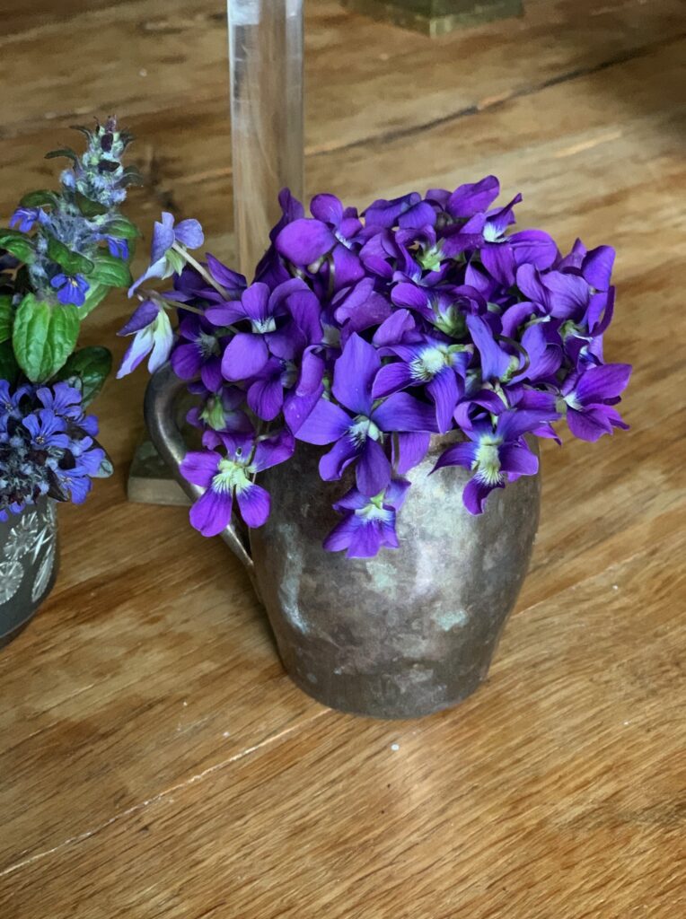We also set little violets arrangements around the house. One of the humblest little flowers, violets won’t be overlooked, and when brought inside and elevated in a special vase (or in our case, silver creamer) they make the sweetest “spring” statement!