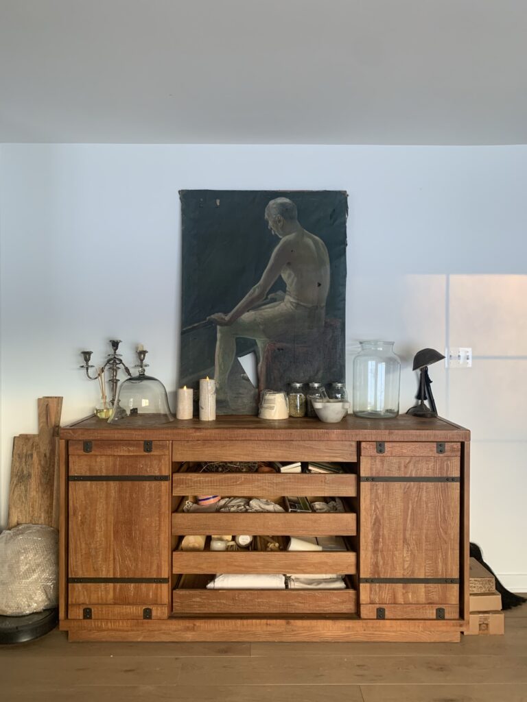 On our sideboard (left) is a brass vase of dried olive branches and the shade of sage-y green is my current favorite for the house. (I say “current” because, come spring, I’ll be in love with the chartreuses & deep mossy greens out the windows!) The kids put most of the things in the drawers here away themselves and so while it’s not the neatest, I didn’t have to do it and I’m strangely comfortable with our arrangement.