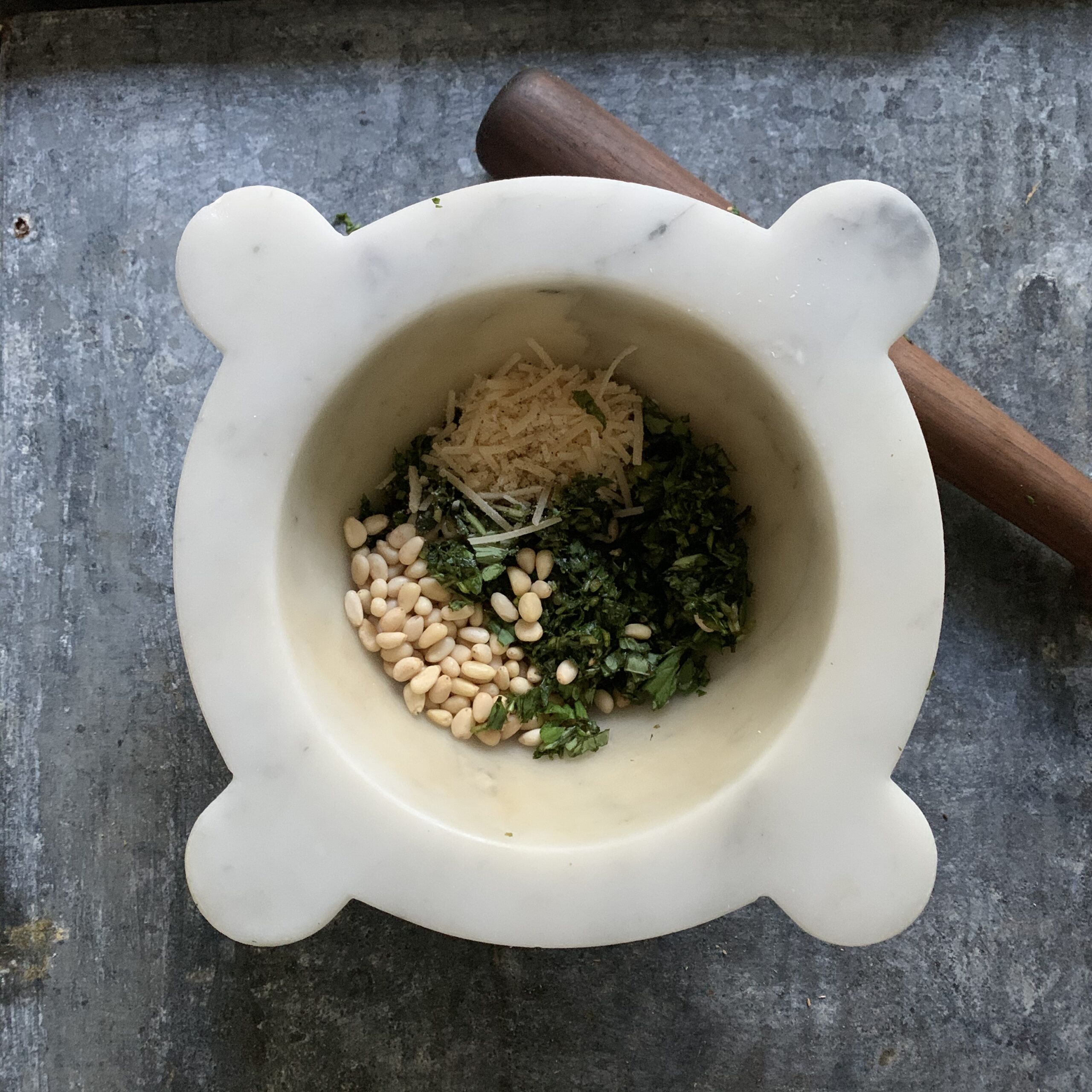 A salty classic, pesto instantly elevates any meal with vibrant flavors. Pesto is a staple in our house and we use it on pasta, to top off soups, fresh veggies and casseroles!